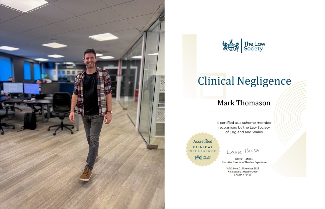 Mark Thomason a fost reacreditat cu succes de The Law Society for Clinical Negligence (confirmat la 3 Februarie 2026). Acreditarea este un standard recunoscut de calitate pentru avocații care gestionează cazuri de neglijență clinică ale reclamanților, reflectând experiența de specialitate și dezvoltarea profesională continuă.